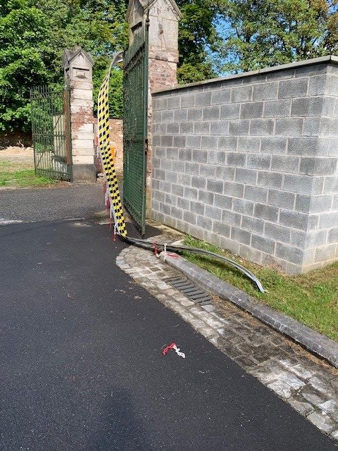 L’équipe technique a découvert que la barrière à l’entrée du site a été détruite, probablement par un camion. Cet incident a causé des dégâts considérables et nécessite une réparation urgente pour garantir la sécurité des lieux